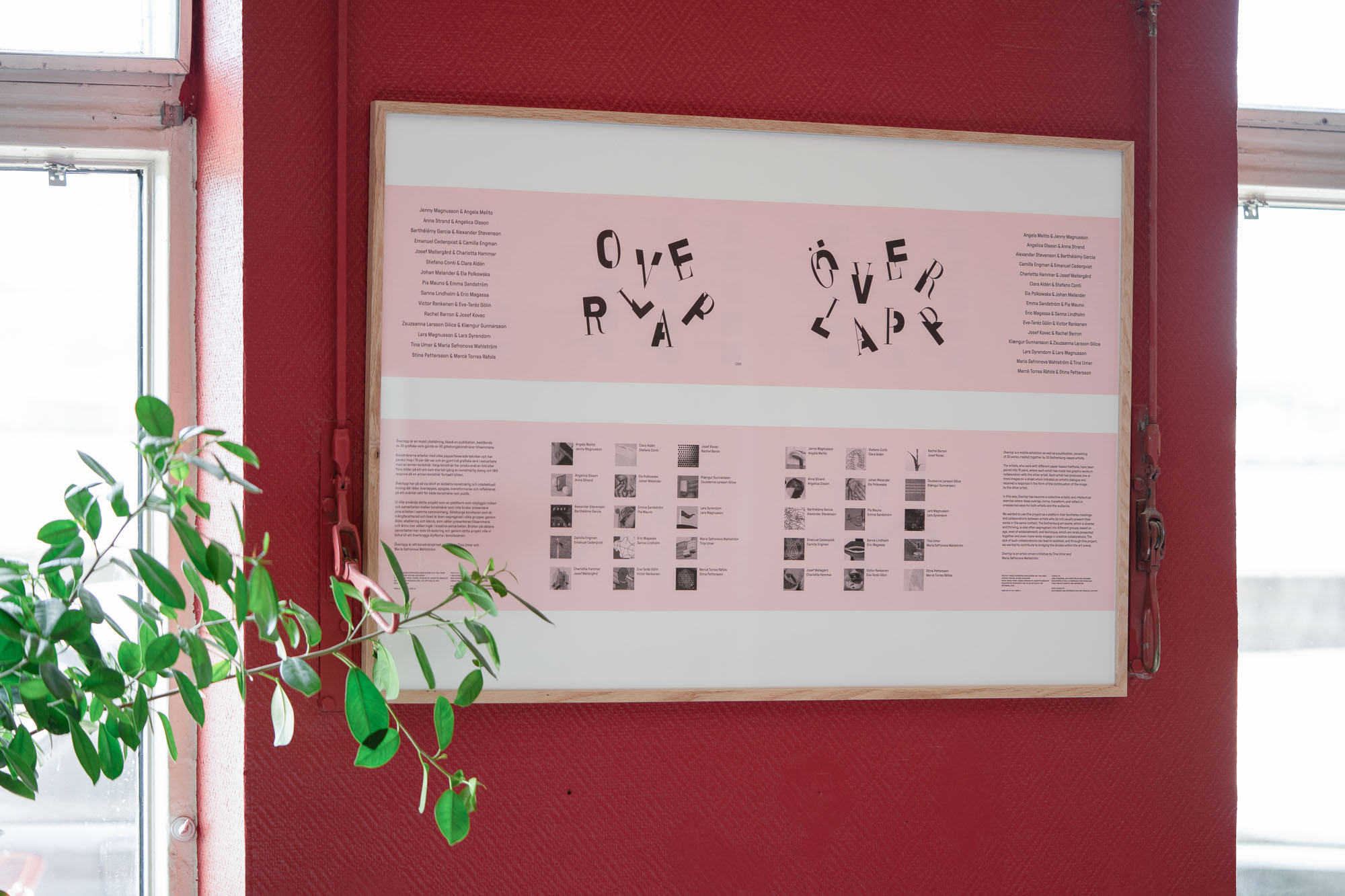Överlapp är en mobil utställning, likasà en publikation, bestäende av 30 grafiska verk gjorda av 30 göteborgskonstnärer tillsammans.